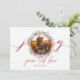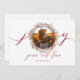 Elégant et élégant carte photo de voeux de vacances. Joie, amour et paix avec un design de couronne de baies en or de cuivre, rouge bordeaux et vert. Foliage, Berries thème boisé avec l'élégance d'une police de caractères tendance et message de voeux de vacances intemporel. Ajoutez votre nom et votre photo sur le devant et votre monogramme initial sur le dos pour un classique d'un design gentil pour envoyer vos voeux de Noël à la famille et aux amis.