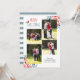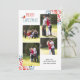 Berries et oiseau Noël carte de collage photo avec quatre photos. Les coins sont recouverts de baies et de feuilles et le dos est recouvert de pois et de rayures bleu-gris et blanc. Photographie © Storytree Studios, Stanford, CA