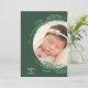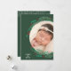 A wreath of pine branches, berries and leaves on a dark green background surround your favourite photo with your greeting in chic lettering on the front and a longer message on the back (back message can be deleted.) BACK dot design can be deleted. Select Matte for heaviest paper and high definition for best print quality.