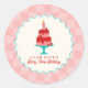Berry 1st Birthday Strawberry Cake Chequerboard Classic Round Sticker