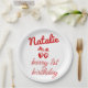 As you see this unique and elegant berry first 1st birthday paper plates has a well designed template. With red hand drawn strawberries and whimsical written hand written name. All on white background . Which you can customize easily by clocking on the personalize button.