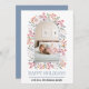 Berry and leaf arch dusty blue Christmas photo Holiday Card
