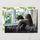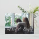 Envoyez des salutations de vacances à vos amis et votre famille dans le style chic avec nos cartes photos élégants. "Merry & Bright" apparaît sur votre photo comme une superposition de script de calligraphie blanche, avec vos salutations et noms sous-jacents. Les cartes retournent à un motif de baies sèches et de feuilles peints à la main en rouge et vert.