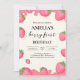 Berry Cute Girl Strawberry 1st Birthday Invitation