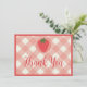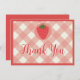 Berry Premier Carte de remerciements d'anniversaire. Doté de fraises rouges avec arrière - plan rose. Parfait pour vos petites filles fête le 1er anniversaire ! Des invitations coordonnées, des panneaux et des décorations sont également disponibles.