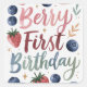 A sweet boho themed design featuring the phrase “Berry First Birthday” written in playful hand-lettered script with long flowing letter extensions inspired by boho calligraphy. The whimsical typography is paired with cute berries and soft botanical accents to create a charming and joyful look perfect for celebrating a first birthday. The gentle color palette and airy layout give the design a warm, modern boho feel that works beautifully for birthday party decorations, bibs, napkins, invitations, and other berry themed celebration items.