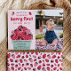 This berry sweet design features a basket of freshly picked watercolor strawberries. Edit with your party information and photo of your child. See the entire collection for more matching items!