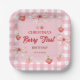 Berry first birthday pink strawberry gingham paper plate