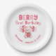Berry First Birthday Teddy Bear Strawberry Pink Paper Plate