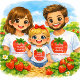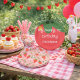 A soft pink background with strawberries, flowers, and greenery