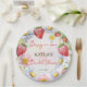 Berry in love strawberry bridal shower monogram printed paper plates template, summer garden strawberry berry themed bridal shower personalized table decor strawberries and daisies garden theme berry in love plates