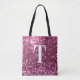 Berry Pink Faux Glitter Bokeh Sparkles Monogram Tote Bag