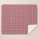 This warm and cozy Sherpa blanket is shown with a berry and golden pink plaid print design.