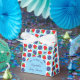 A berry sweet baby is on the way! Blueberry and strawberry fruit with a blue and white chequerboard pattern and trendy arch