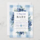 Celebrate your little one with this Berry Sweet Gingham Blueberries Baby Shower Invitation! This charming farmhouse-inspired design features a hand-painted blue watercolor gingham background with a clean white rectangular frame for your text. Delicate blueberries and leafy vines accent the layout, adding a sweet, rustic touch that feels fresh and timeless. Perfect for a boy baby shower, spring or summer celebration, or berry-themed gathering, this design combines classic country style with modern watercolor artistry.