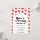 Berry Sweet Baby Shower Invitation, designed with a pink and red strawberry and daisies pattern, a white arch frame, and a retro typography that combined make a modern baby shower invitation for your summer baby shower celebration. It is a great baby shower theme for a gender-neutral baby shower. Look for our matching enclosure cards with the same design in our collection.
