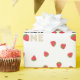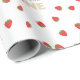 Simple minimalistic berry sweet to be one themed 1st birthday wrapping paper freaturing a large strawberry in the centre on a crisp white background with the text saying berry sweet to be one ,