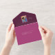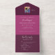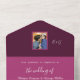This all in one wedding invitation card is special. You get your invitation card and the RSVP card all in one. You can customize the modern and elegant wedding invitation card with your couple photo, Intro, names, occasion, date, adress, rsvp, meals and other background colours to your preferations. Even the image is changeable. It shows a harmonious blend of moody purple and berry tones and it has fitting white typography. It is a simple minimal fancy design with fitting purple and berry tone backgrounds. You can elegant seal and send this trifolded budget wedding invitation. Send the tear off RSVP Postcard back to the sender. Make this special design yours and feel like the prince and princess on your future wedding. Hobinishop
