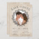 Announce your wedding day with this Berry Wreath and Stripes Save the Date Announcement. Save the Date design features an antique striped background and photo placement for the happy couple with an elegant berry wreath frame. Add your photo and wedding details to customize.