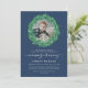 Berry Wreath Navy Blue Naming Ceremony Photo Invitation
