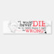 "I would never die for my beliefs because I might be wrong" ~Bertrand Russell. Though not a sceptic himself, Russell wrote a great deal on whether we can know anything for certain. Advertise your own willingness to doubt dogma to anyone riding your bumper with this bumper sticker!