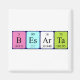 Besarta spelled out as B Es Ar Ta (Boron Einsteinium Argon Tantalum) on a magnet for the scientist in you.