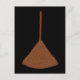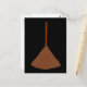This postcard features an image of an old-fashioned Besom, or witches broom. The besom is brown and is covered in lots of little twigs. The background is black.