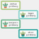 Cactus clothing stickers for your kids with cute cacti sitting in flower pots and wearing glasses. Each cactus has a flower on its head like a little prince crown. The sticker labels have borders in teal and green.