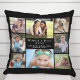Give the world's best aunt a fun custom photo gift. This black throw pillow features an 8 photo collage of her nieces, nephews, family, etc., their names, "World's Best Aunt" and whether she is called "Auntie," "Tia," etc., in modern white typography.
