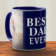 Best Bad Ever Father`s Day 2 Photo Collage Blue Coffee Mug. Personalize the mug with your photos - insert two photos into the templates. Modern white bold typography Best Dad Ever - you can change any part of the text if you want. Create your own personal Father`s day gift for a dad.