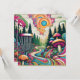 Wishing you the best birthday by par. Disc golf themed birthday card for her. A unique colourful disc golf course in a field of retro mushrooms, pine trees, colourful swirling cloud, sunshine in vintage colours like blue, green, pink and orange.