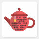 Red teapot steeping with some of the best black teas listed on the pot: early grey, assam, English breakfast, Darjeeling, lapsang souchong, Ceylon, masala chai, tieguanyin, nilgiri, keemun, and Irish breakfast. Perfect for National Hot Tea Month in January.