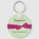 Best Bridesmaid Custom Name Printed Bow Gift V01 PINK Bow GREEN Background Want a cute little something for the women of your wedding party? This key chain with its printed faux bow is a pretty memento of your special day.