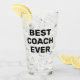 A beer pint glass with the words Best Coach Ever in large, bold letters.