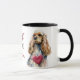 "Best DOG Mom" declares this cute mug at the centre. The image on each side is an adorable image of a blonde Cocker Spaniel with a red heart. Perfect for Mother's Day or her birthday! All the text is customizable, so you may change it for Dad on Father's Day, too.