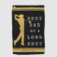 Personalized golf towel for the golfer Dad with the saying BEST DAD BY A LONG SHOT. Great gift for a dad's birthday or Father's Day. Editable black and gold colour theme. CHANGES: You can change black background or stripe colours or the text font style, size, colour or placement or by clicking on CUSTOMIZE FURTHER under the PERSONALIZE section. Contact the designer via Zazzle Chat or makeitaboutyoustore@gmail.com if you'd like this design modified or on another product.