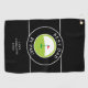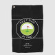 Best Dad By Par | Fun Father's Day Golf Towel This funny, custom golf towel features vibrant golf greens with a red flag, bordered by curved text that reads "Best Dad By Par" in a sleek, modern white font. Personalize it with a monogrammed name, initials, or custom text in matching white for an extra special touch. The solid black background makes the design pop, ensuring Dad stands out on the course.