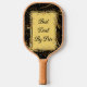 Let your Father's Day Gift - a pickleball paddle be as unique as his sports preference! Modern gold calligraphy on a black background with swirls is just right for your Sportsman Dad. The illustration features golden swirls on a black setting. The TEXT "Best Dad by Par" in the centre has a floral border and is customizable.