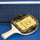 Let your Father's Day Gift be as unique as his sports preference! Modern gold calligraphy on a black background with swirls serves as a killer ping pong paddle! The illustration features golden swirls on a black setting. The TEXT "Best Dad by Par" in the centre has a floral border and is customizable.