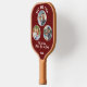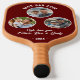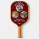 Best Dad Ever 3 Photos Father`s Day Keepsake Pickleball Paddle. 3 pictures in a circle frame on a dark red background. Add 3 photos, text and year. A perfect sports gift and a sweet keepsake for Father`s Day for father or grandfather.
