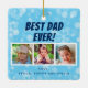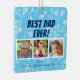 This Christmas tree ornament is an awesome Christmas gift for any dad. The design offers three photo frames for photos of children or dad on a light blue snowflake background. "Best Dad Ever" appears in bold white text above the pictures. Personalize this heartfelt gift with the names of his children.