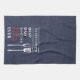This personalized BEST DAD EVER kitchen towel is for the father, who is also the Grill Master. Use the template to type your father's name to create a unique present. Design is in blue, white, and red colours, and the background imitates linen pattern.