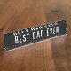 This modern and minimal name plate says "best dad ever" in vintage look white text on a simple but bold black background, and is the perfect choice for Father's Day.