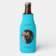 Best Dad Ever | Custom 2 photos and text Father's day Beer Bottle Cooler featuring modern sans-serif font on playful turquoise light blue background.