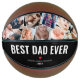 Turn your favourite family memories into a meaningful gift for Dad with the Personalized Father's Day Basketball Keepsake. This unique and customizable keepsake will be a meaningful reminder of your love and appreciation. Featuring a photo collage of 12 family pictures for you to replace with your own, the saying "BEST DAD EVER" in a white bold font, a red heart, the childrens names, and the year.