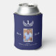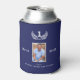 A can cooler for the world's best dad, father. A navy blue background. Decorated with a white victory wreath and numer 1. Personalize and add a photo of your dad and your names (kid's name)