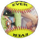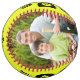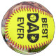 Best Dad Ever Custom Photo Personalized Name Softball features two of your favourite photos with the text "Best Dad Ever" in modern black script and your custom text in the centre on a yellow background. Personalized by editing the text in the text boxes provided and adding your photos. PHOTO TIP: edit your photos prior to uploading to Zazzle with the subject in the centred. Designed by ©Evco Studio www.zazzle.com/store/evcostudio