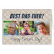 This fun Father's Day greeting cards offers three photo frames for pictures of children or dad. Custom text "Best Dad Ever" appears in dark blue print on a light tan plaid background. Add photos of his children to make this card a truly heartfelt gift.