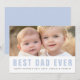 Father's day card featuring your photo and light blue, modern font text "Best dad ever" with your message below on the front. Light blue or custom colour back. Change colours and fonts, move and resize elements in the design tool.