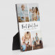 This plaque features a collage of 4 photos with the message "best dad ever" in a handwritten script and names of family members in a simple, traditional font. Add your 4 favourite family photos. A sweet keepsake and a gift for Father`s Day, Christmas, or a new dad.